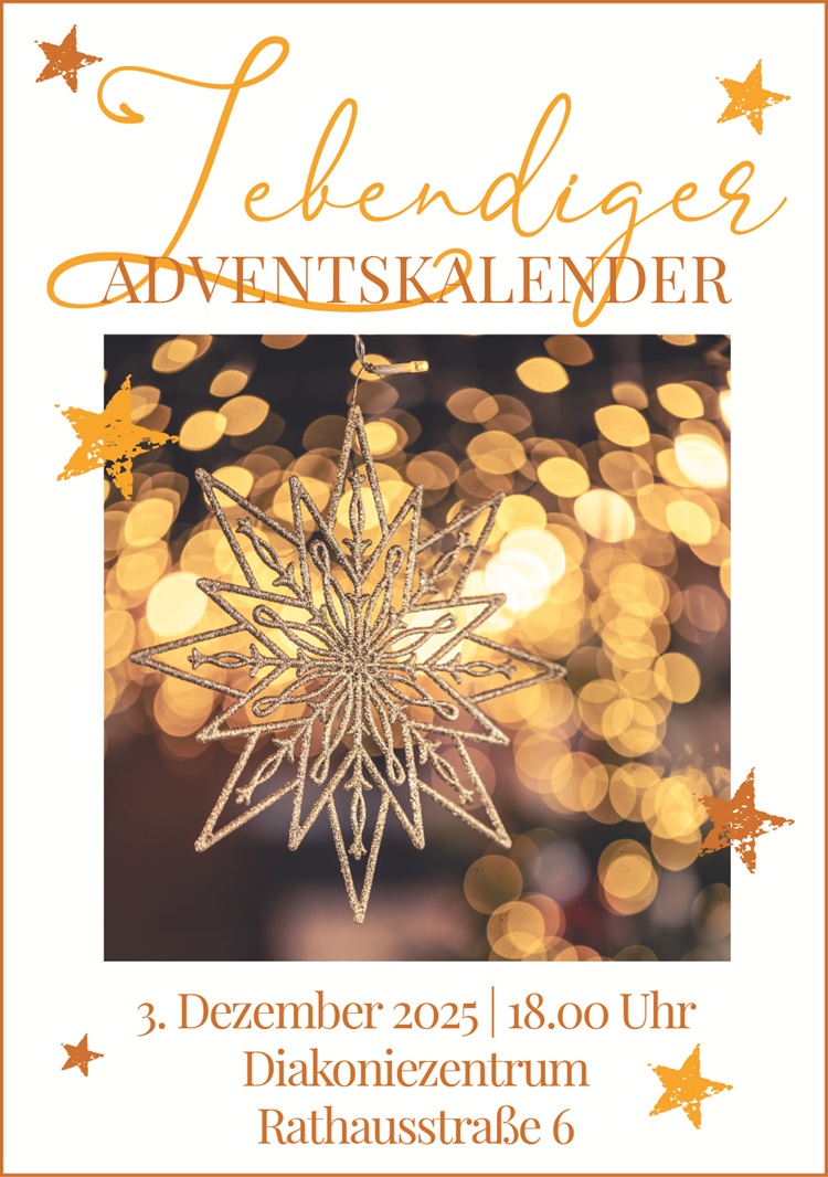 Das Adventsfenster wird am Mittwoch, 4. Dezember 2024 um 18.00 Uhr vor dem Diakoniezentrum geöffnet.