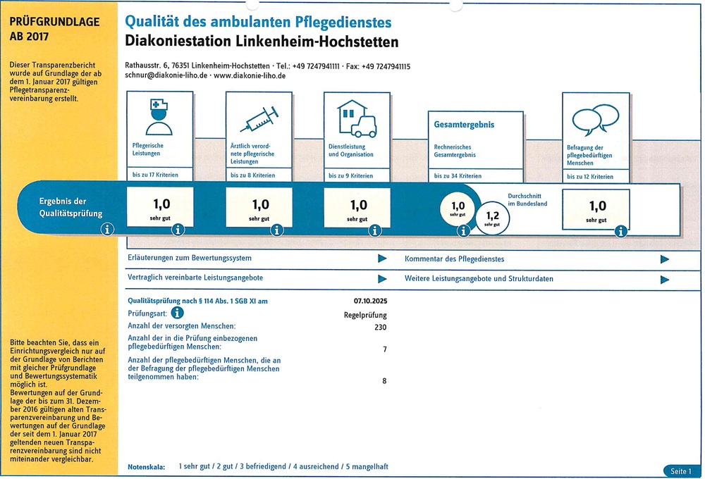 Wie in jedem Jahr wurde die Diakoniestation Linkenheim-Hochstetten auch 2025 vom Medizinischen Dienst der Pflegekassen besucht. Dieser Tag ist immer spannend für uns, da unsere Arbeit von außen begutachtet wird und wir dazu Rückmeldung und Benotung bekommen.